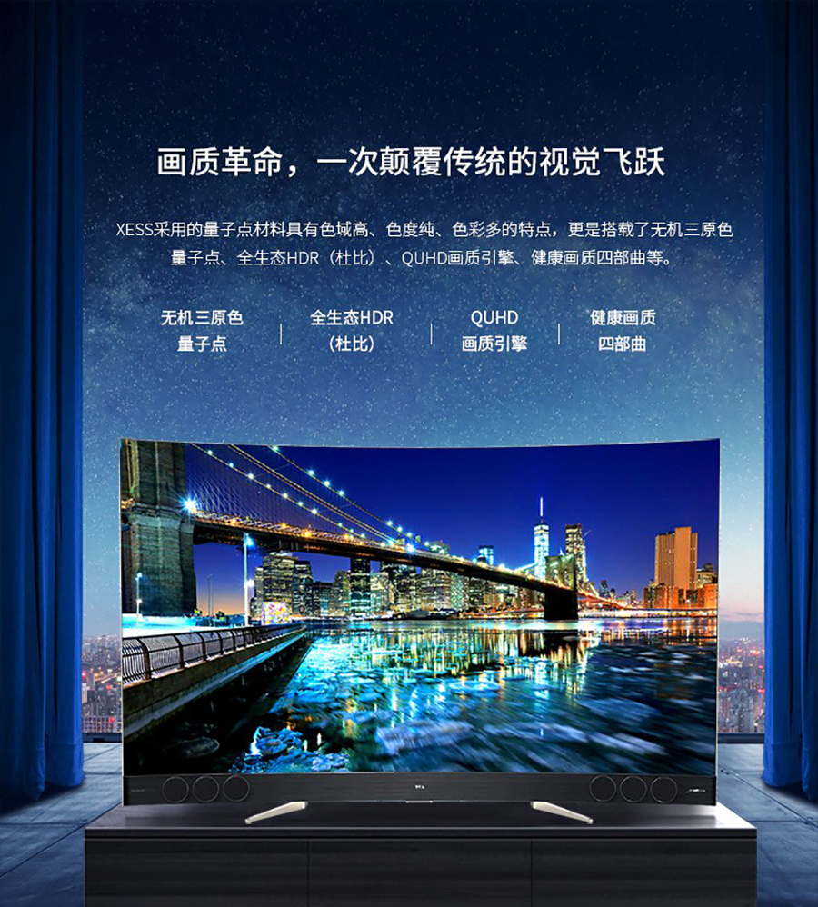 2017年1月,TCL在美國拉斯維加斯國際消費類電子產(chǎn)品展覽會(CES2017)上重磅發(fā)布了XESS X2、X3系列量子點電視。XESS系列量子點電視采用穩(wěn)定可靠的無機三原色量子點材料,實現(xiàn)了色彩處理從微米級到納米級的量級突破,色域覆蓋率達157%(BT.709),色彩純凈度提升37.5%,色彩恒久不褪色,,持久穩(wěn)定達60000小時。榮膺2017“中國創(chuàng)造年度產(chǎn)品國際創(chuàng)新獎”,獲國內(nèi)首批廣色域電視認證。